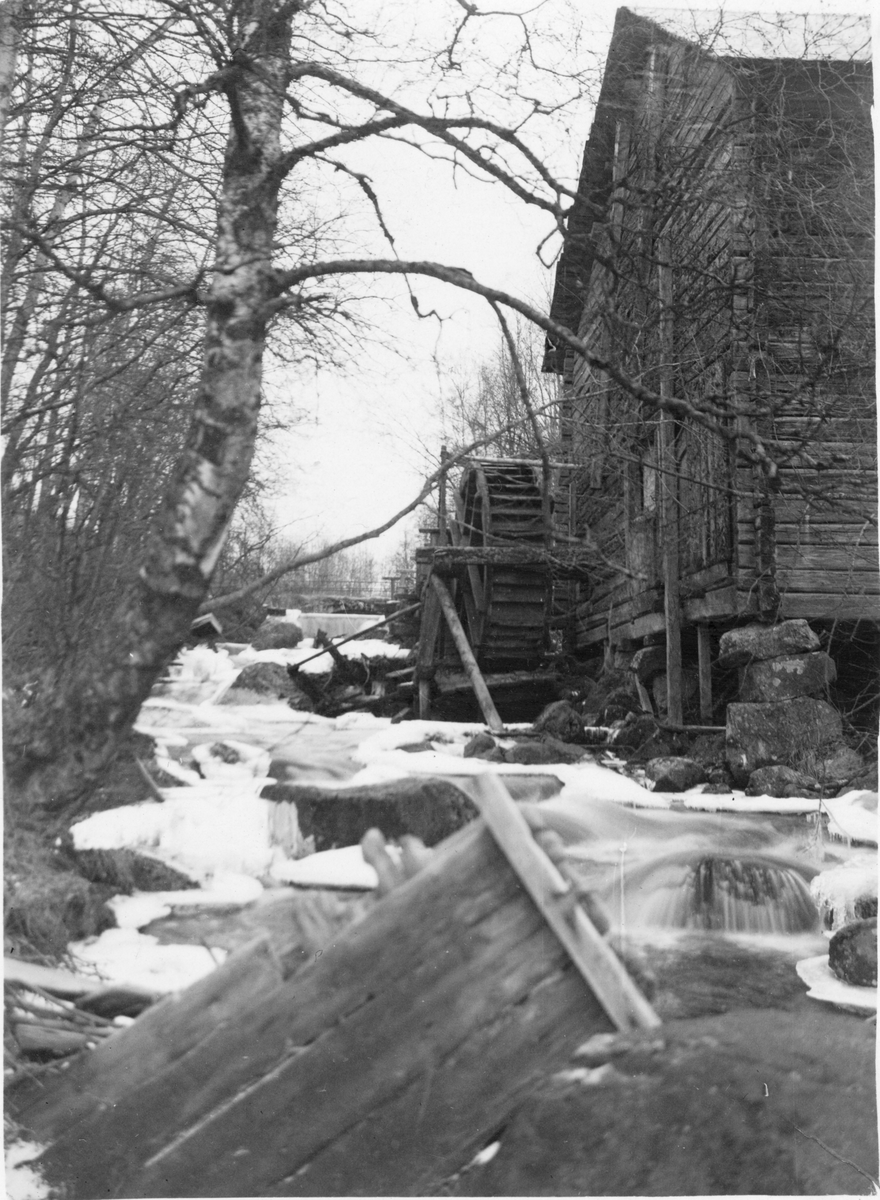 Kyrkbäcken i Indal med vattenhjul till prästgårdens tröskloge.