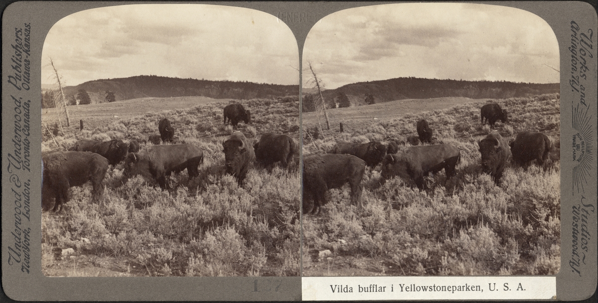 Stereobild av vilda bufflar i Yellowstoneparken.
