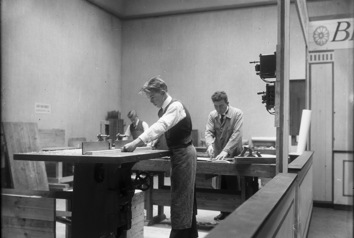 Hantverkets propagandautställning: Såg (tillskärning). Anordnare Stockholms stads verkstadsskolor.