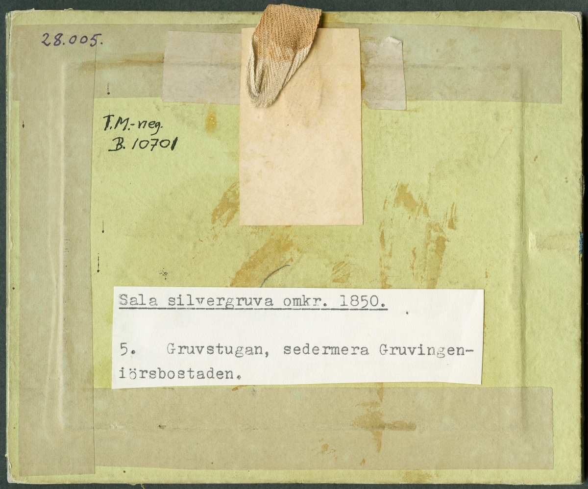 Baksidan av daguerreotyp. Gruvstugan, sedermera Gruvingenjörsbostaden vid Sala Silvergruva.