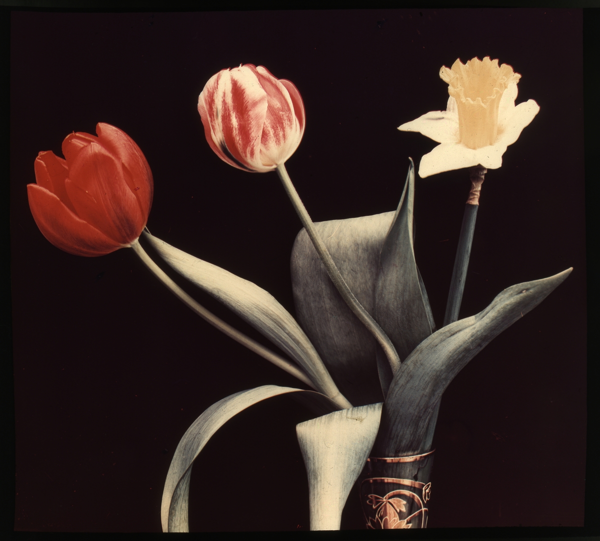 Autokrom. Stilleben med motiv av tulpaner. Neg. Av J. Hertzberg överförda till gelatinreliefer på Agfa Anaglyffilm, infärgade med pinatypiefärger.