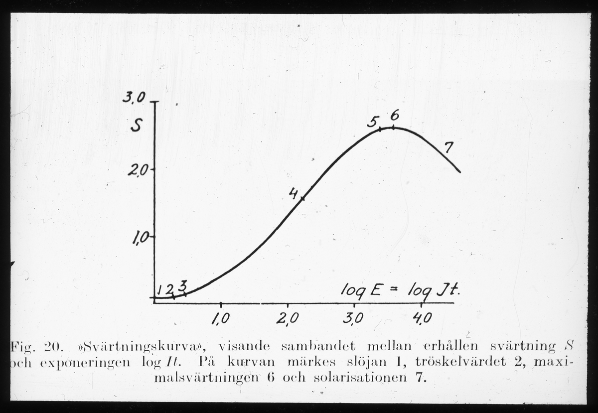 Skioptikonbild från Institutionen för fotografi vid Kungliga Tekniska Högskolan. Använd av professor Helmer Bäckström som föreläsningsmaterial. Bäckström var Sveriges första professor i fotografi vid Kungliga Tekniska Högskolan i Stockholm 1948-1958.