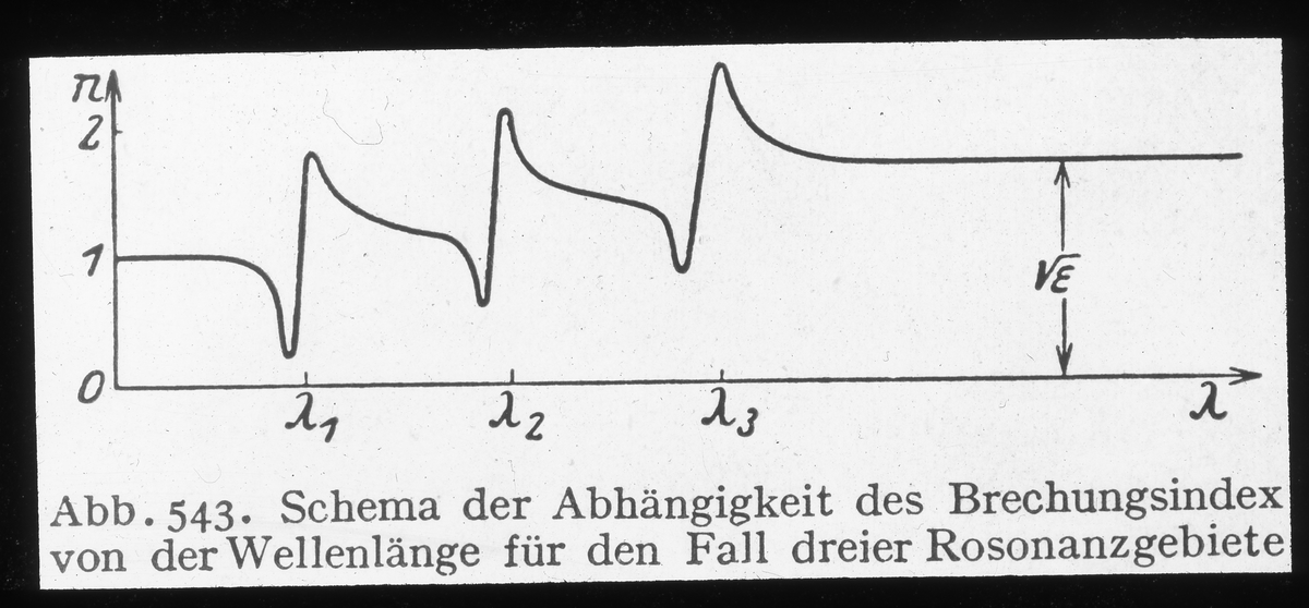 Schematiskt beroende av våglängdens brytningsindex i tre fall för resonansområdena.