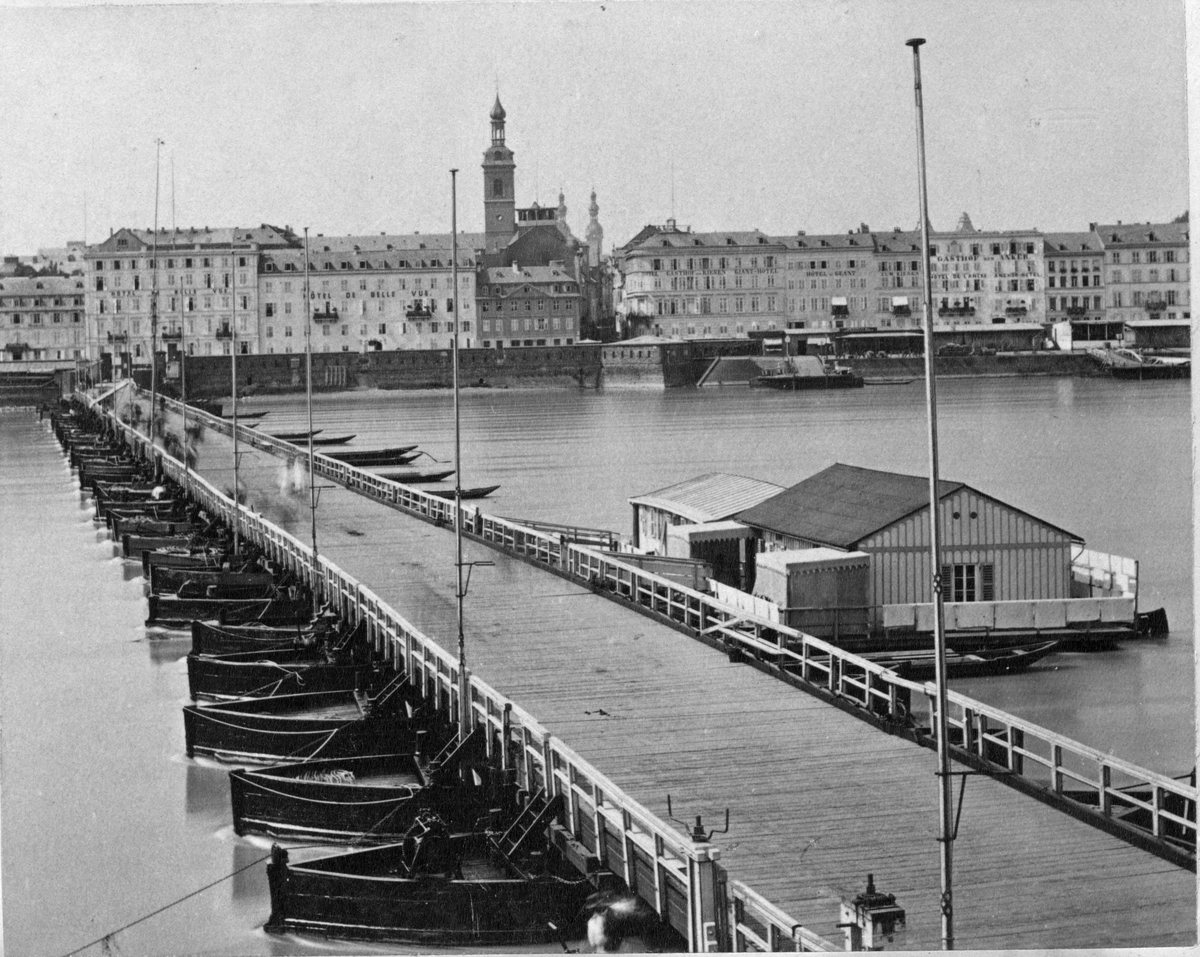 Schiffbrücke i Koblenz, Tyskland, omkring 1880.