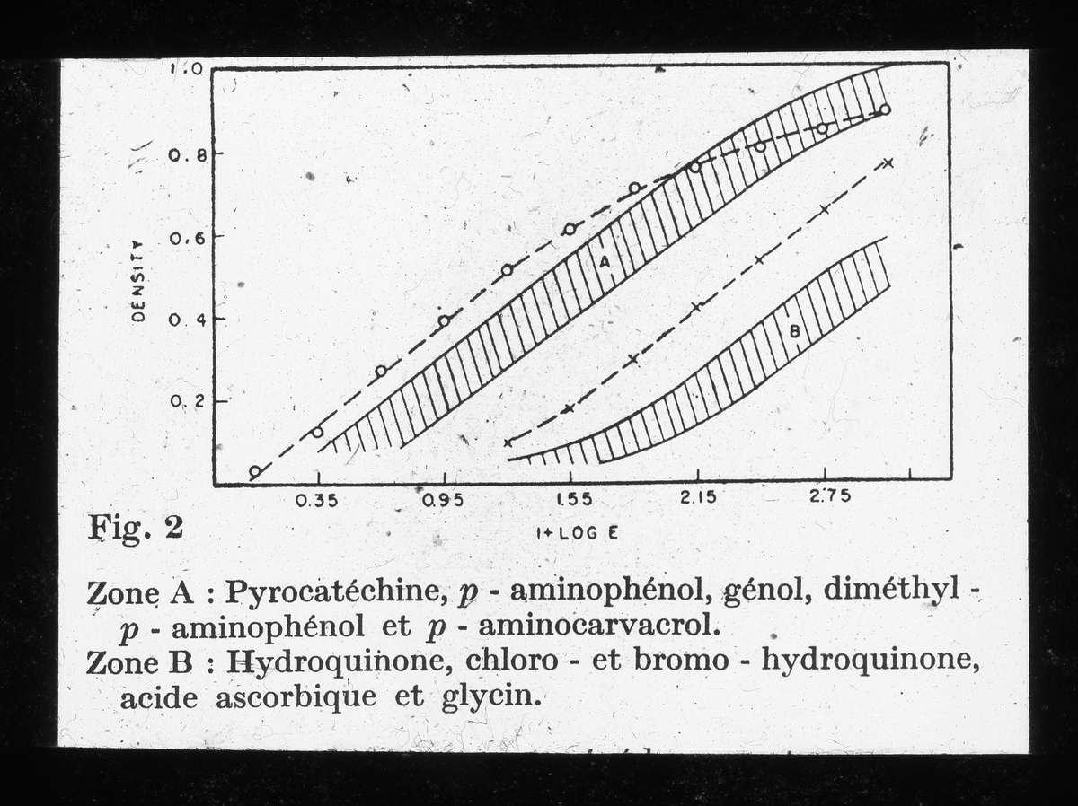 Skioptikonbild från Institutionen för fotografi vid Kungliga Tekniska Högskolan. Använd av professor Helmer Bäckström som föreläsningsmaterial. Bäckström var Sveriges första professor i fotografi vid Kungliga Tekniska Högskolan i Stockholm 1948-1958.