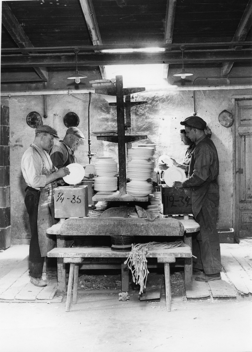Gustavsbergs Porslinsfabrik. Godset sättes i eldfasta formar.