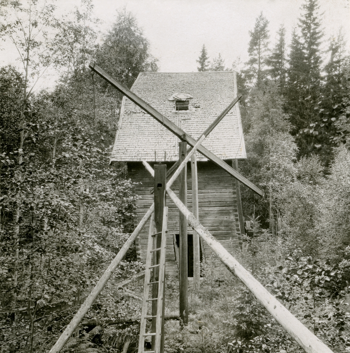 Hjulhuset vid Östanbergs järngruvor. Huset blåste kull 1930.