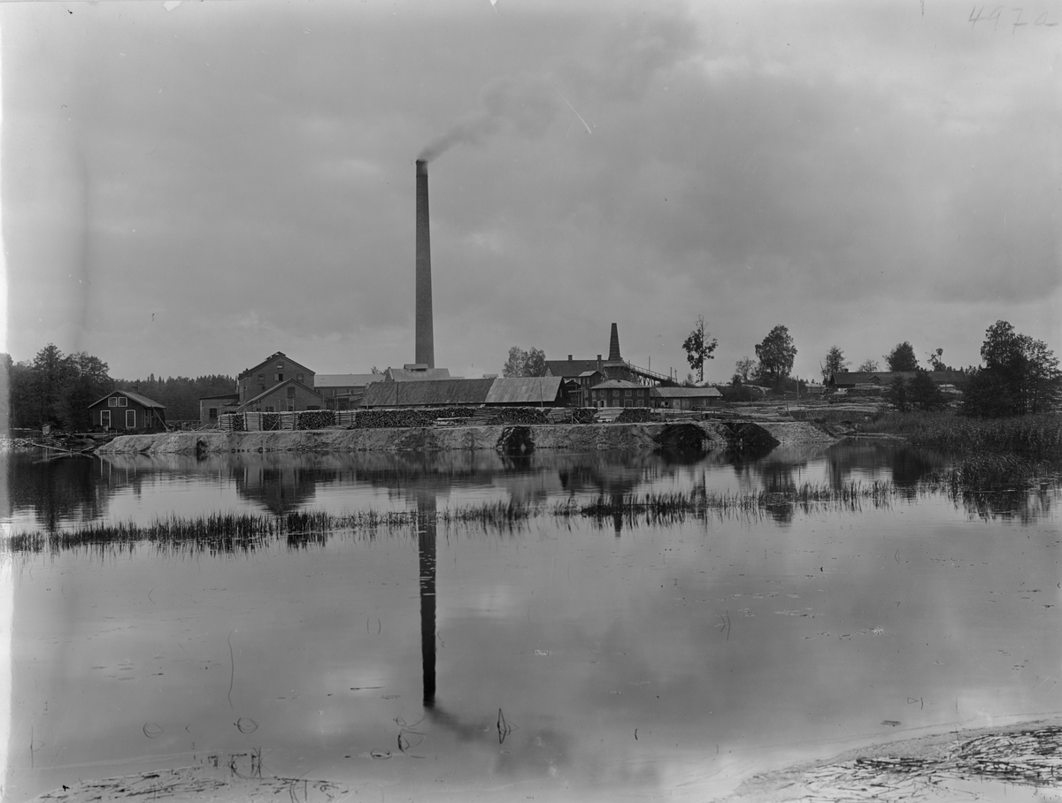 Wärmbohls bruk. 1. Verkstad. 2. Sileri. 3. Renseri. 4. Kokeri-Diffusörer. 5.Papperssalen. 6. Sodahus. 7. Förråd. 8. Kalkugnen. 9. Kalkbod.