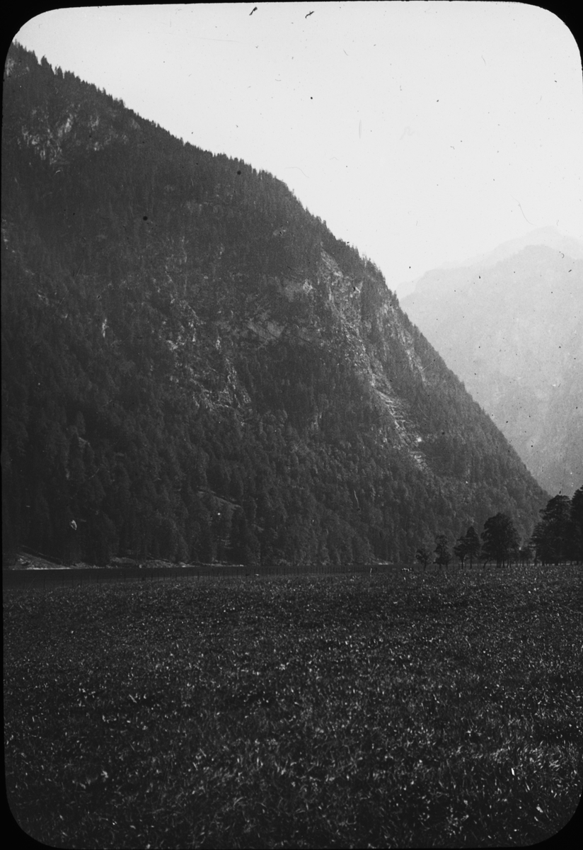 Skioptikonbild med motiv av berget Watzmann? vid sjön Der Köningssee, sydöstra Bayern, Tyskland.