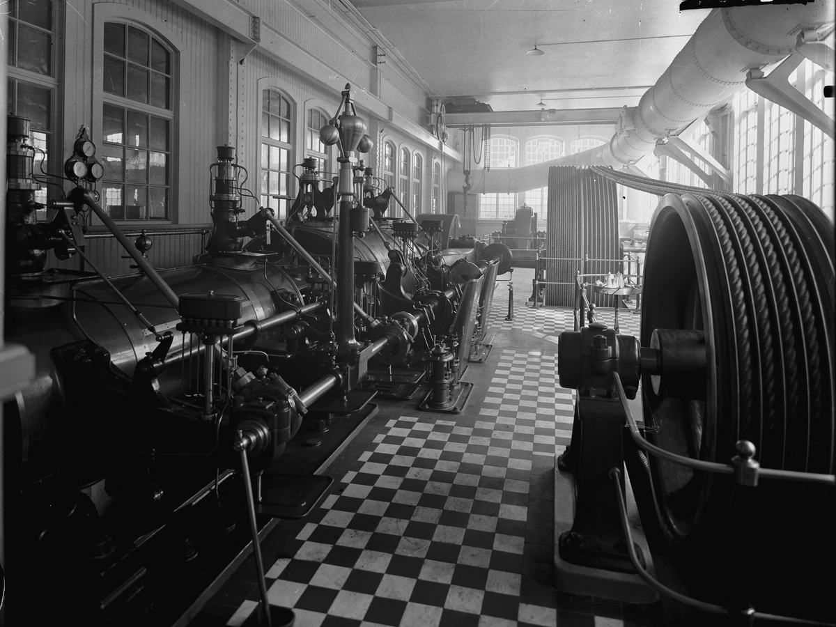 Ventilångmaskin (egen produkt), installerad i den egna ångpannecentralen. J & C G Bolinders Mekaniska Verkstads AB.