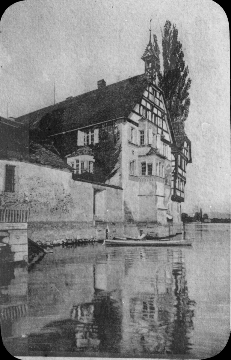 Skioptikonbild med tryckt motiv av klostret St. Georgen.
