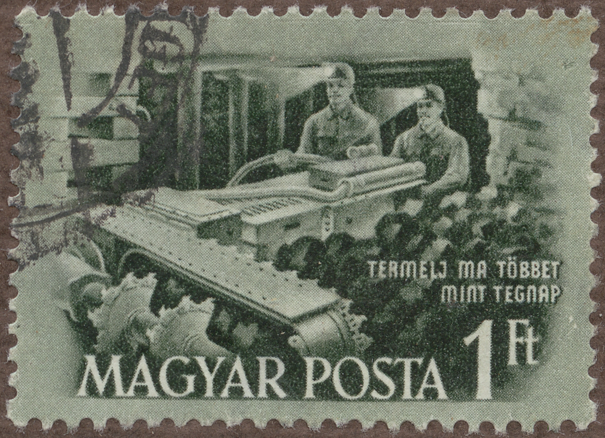 Frimärke från Ungern, 1952. Motiv av Gruvarbetare vid kolbrytningsmaskin.
