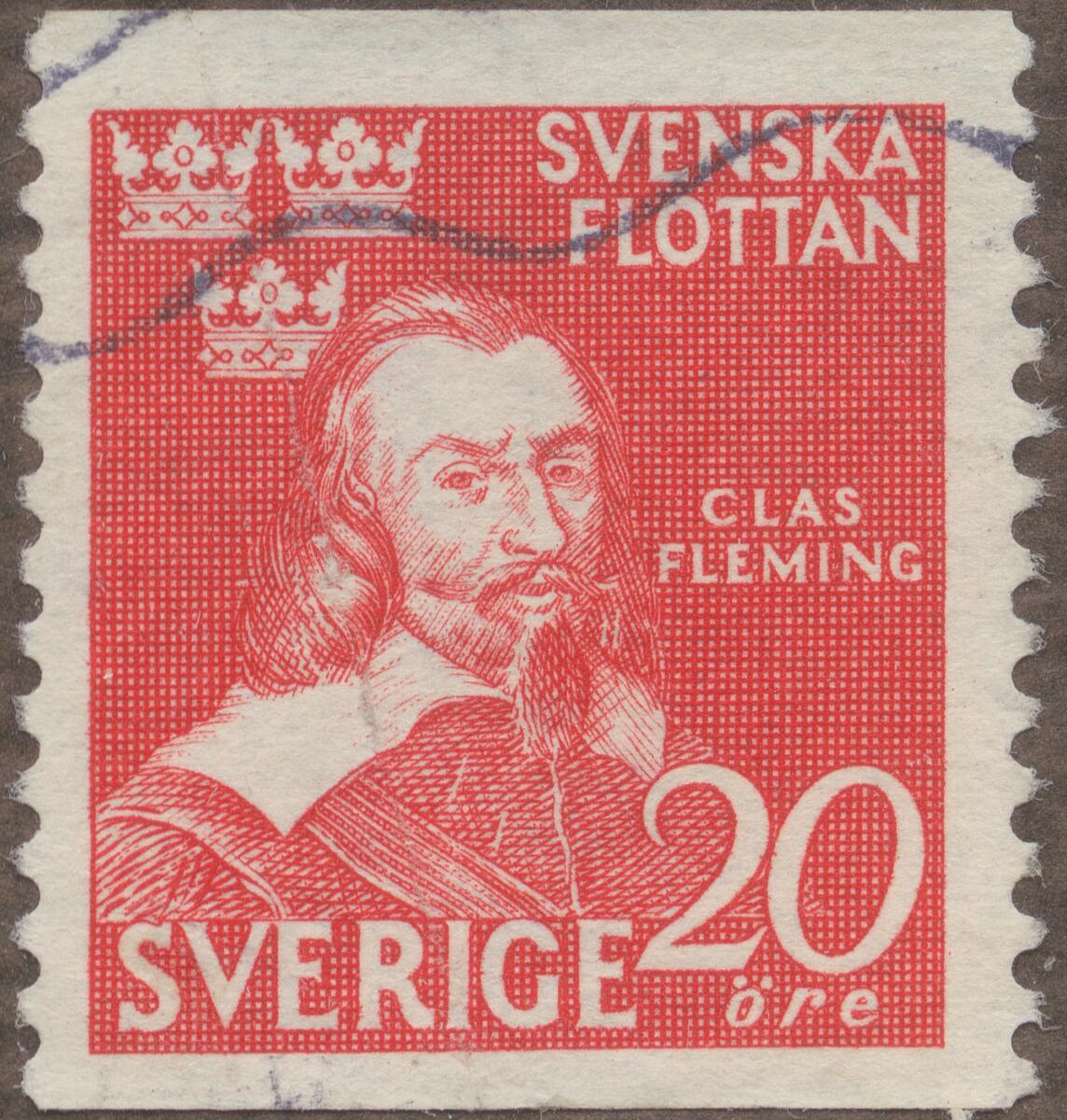 Frimärke från Sverige, 1944. Motiv av Clas Fleming c:a 1530-1597 Amiral Hövitsman över Finland 1591-1597 "Serien: Sveriges Flotta"
