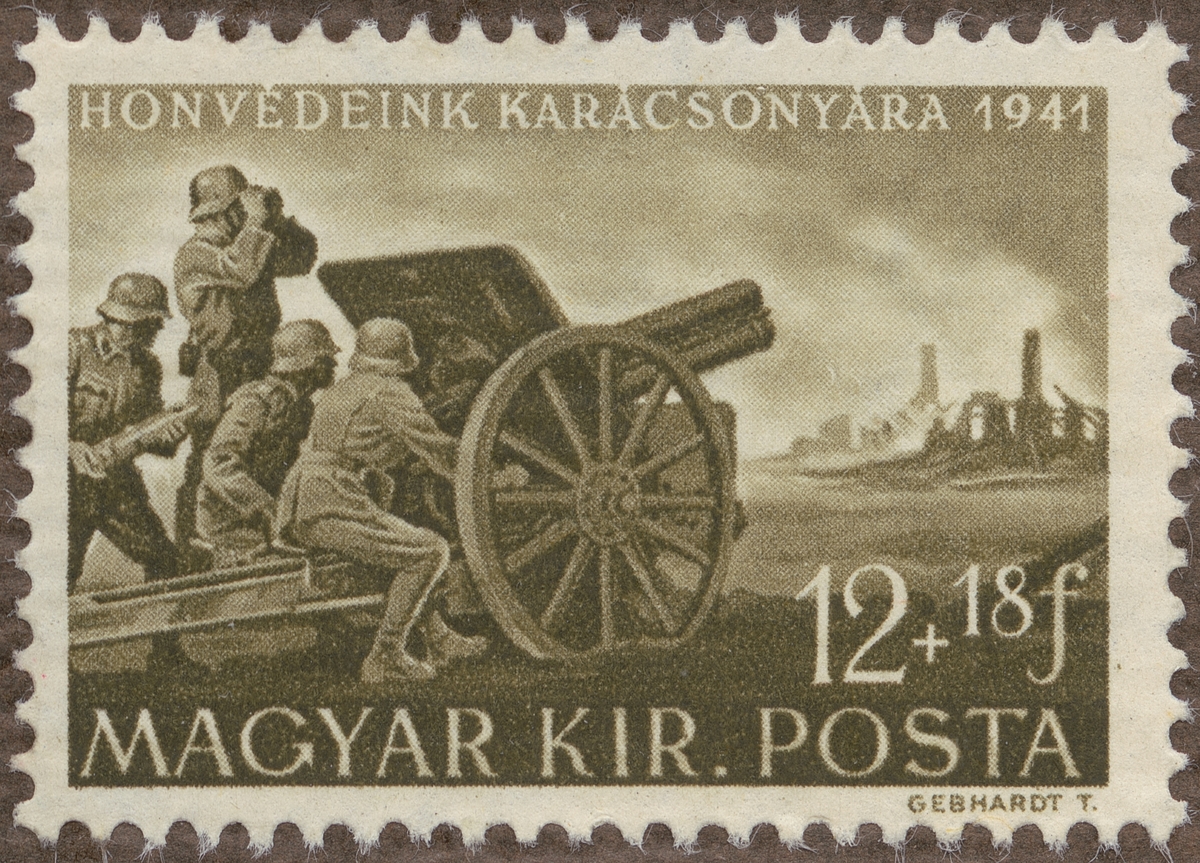 Frimärke från Ungern, 1941. Motiv av Lätt artilleri "-Serie till förmån för hären-"