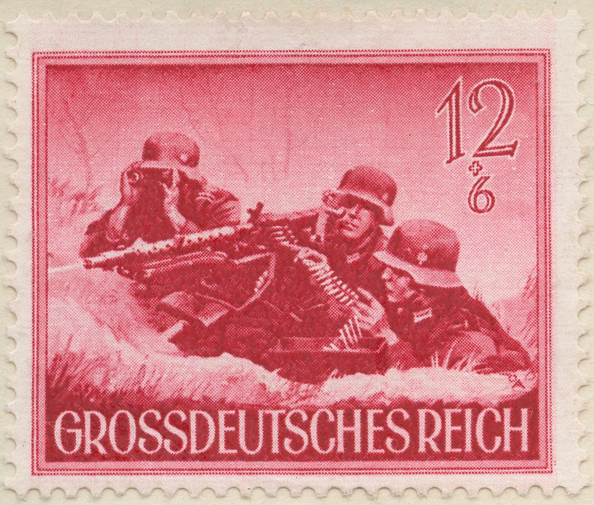 Frimärke från Tyskland, 1944. Motiv av Infanterister med kulsprutegevär