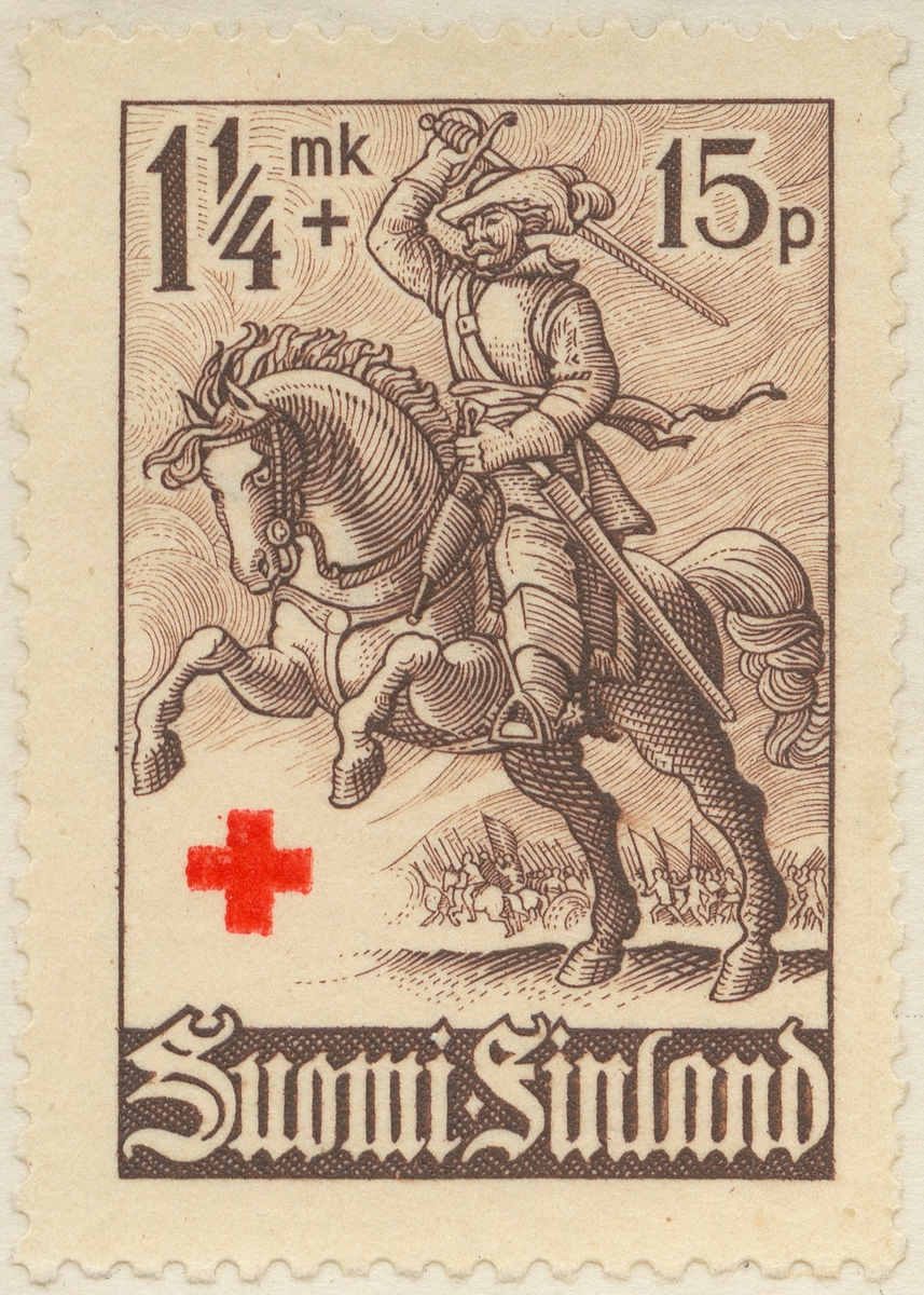 Frimärke från Finland, 1940. Motiv av Dragon med sabel -Till förmån för Röda Korset-