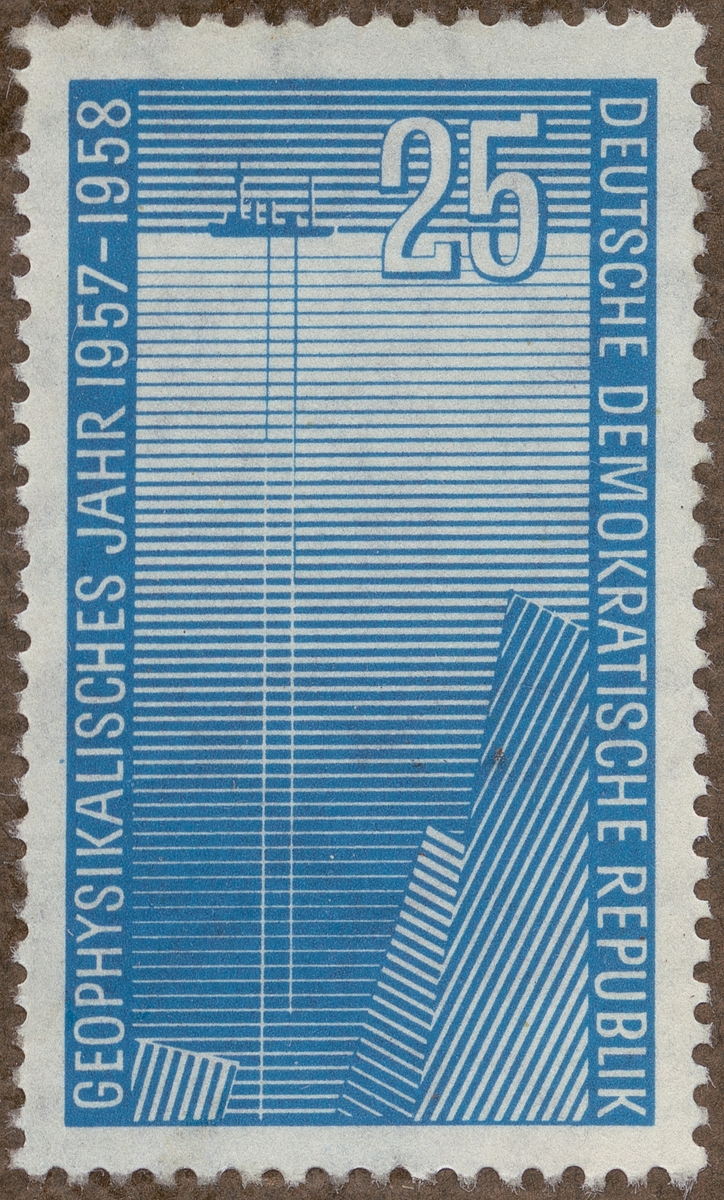 Frimärke från Öst Tyskland, 1957. Motiv av Lodning på stort Havsdjup Geofysiska Året 1957-1958