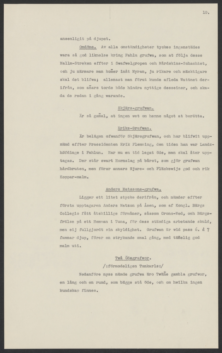 Titel: Stora Kopparbergets kronologi. Ur Carl Sahlins bergshistoriska samling.