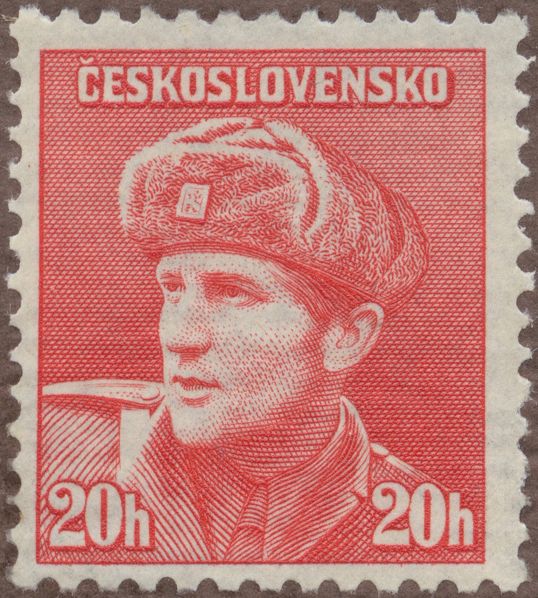 Frimärke från Tsceckoslovakiet, 1945. Motiv av Otakar Jaros Tscheckoslovakisk flygare