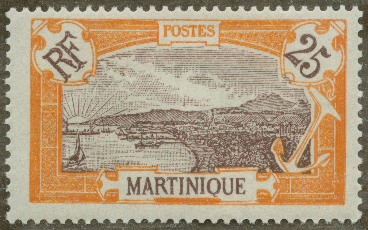 Frimärke från Martinique, 1908. Motiv av Staden Fort de France