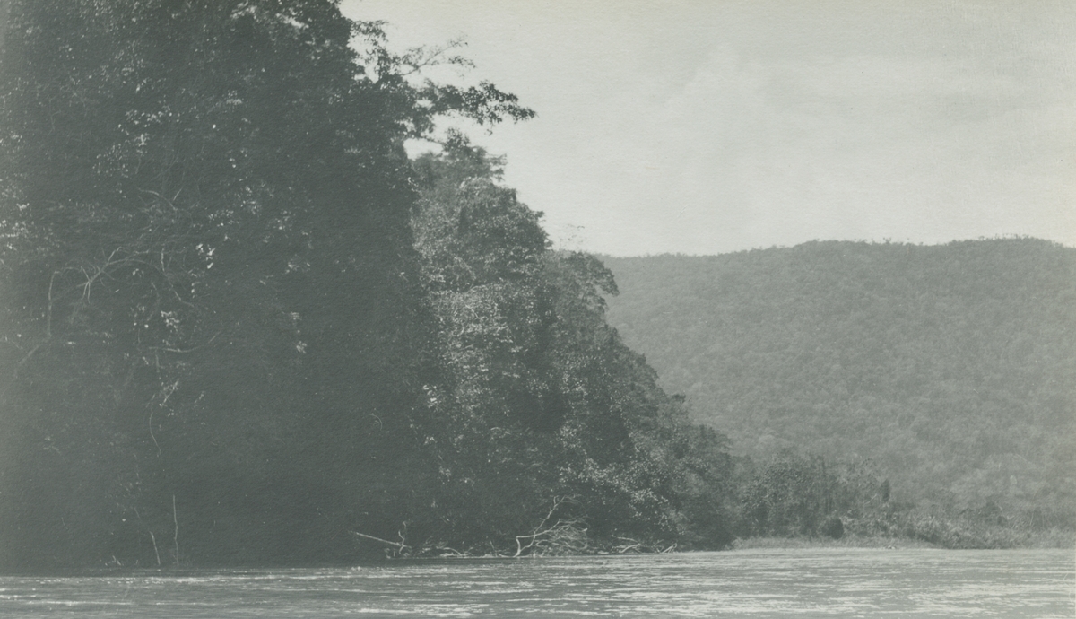 Fotografi från expedition till Peru 1920. Vy över flod och djungel.