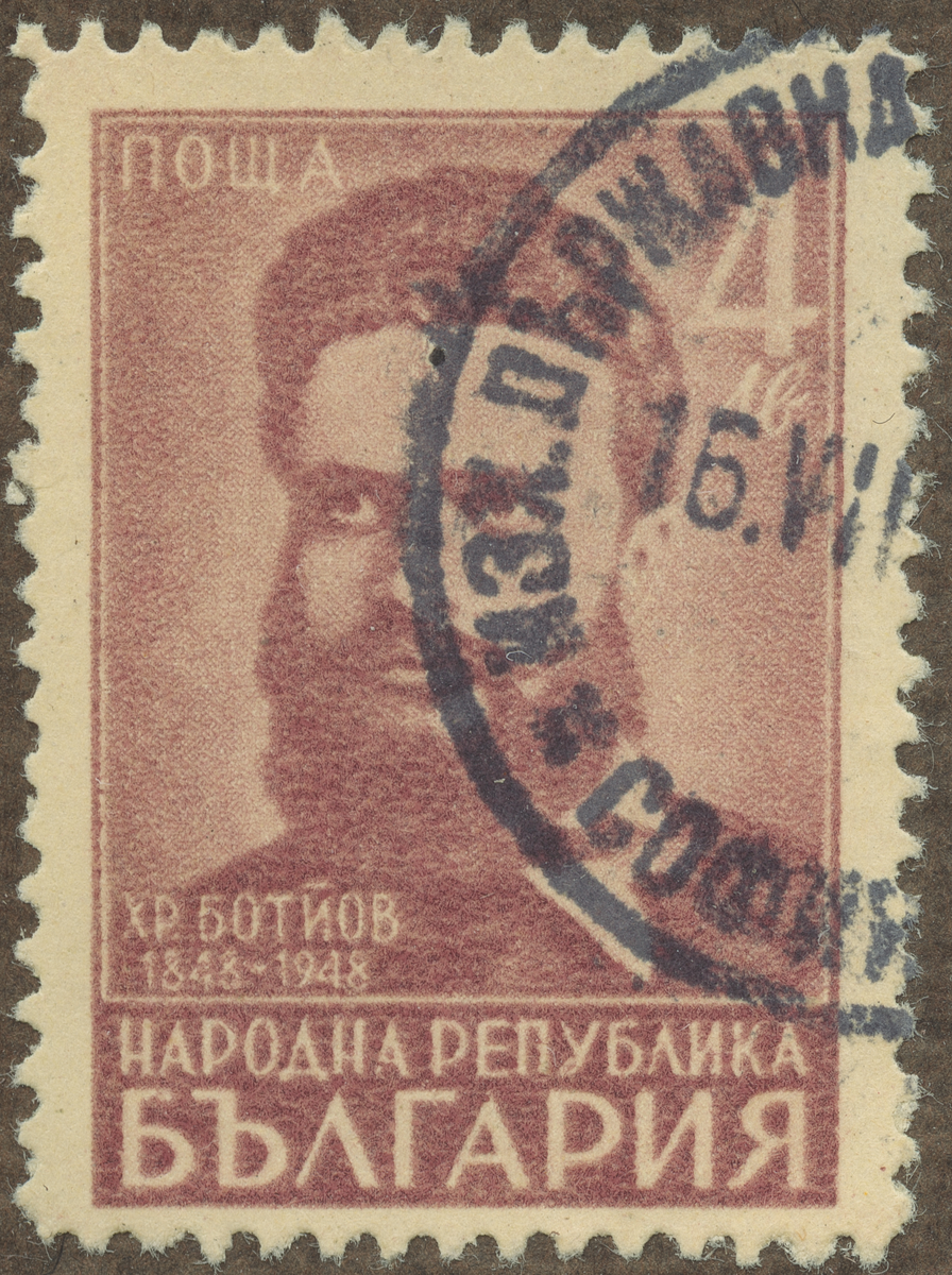 Frimärke från Bulgarien, 1948. Motiv av Kristo Botev: 1848-1876. Bulgarisk nationalpoet och revolutionär. 100-årsminne av hans födelse: 1848-1848.