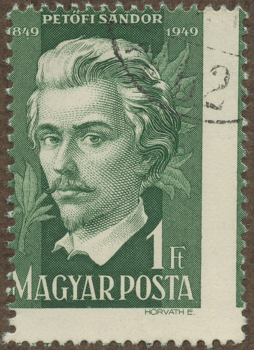 Frimärke från Ungern, 1949. Motiv av Ungraren Sandor Petöfi. 1823-1849. Revolutionär skald. Frihetshjälte 100-årsminne av hans död. 1849-1949.
