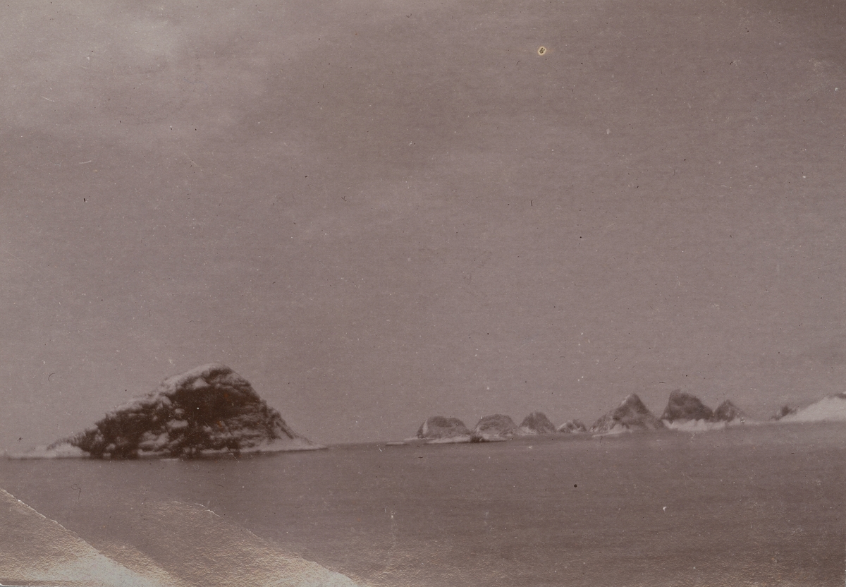 Fotografi från första svenska Antarktisexpeditionen 1901-1904. Vy över hav och snötäckta berg.