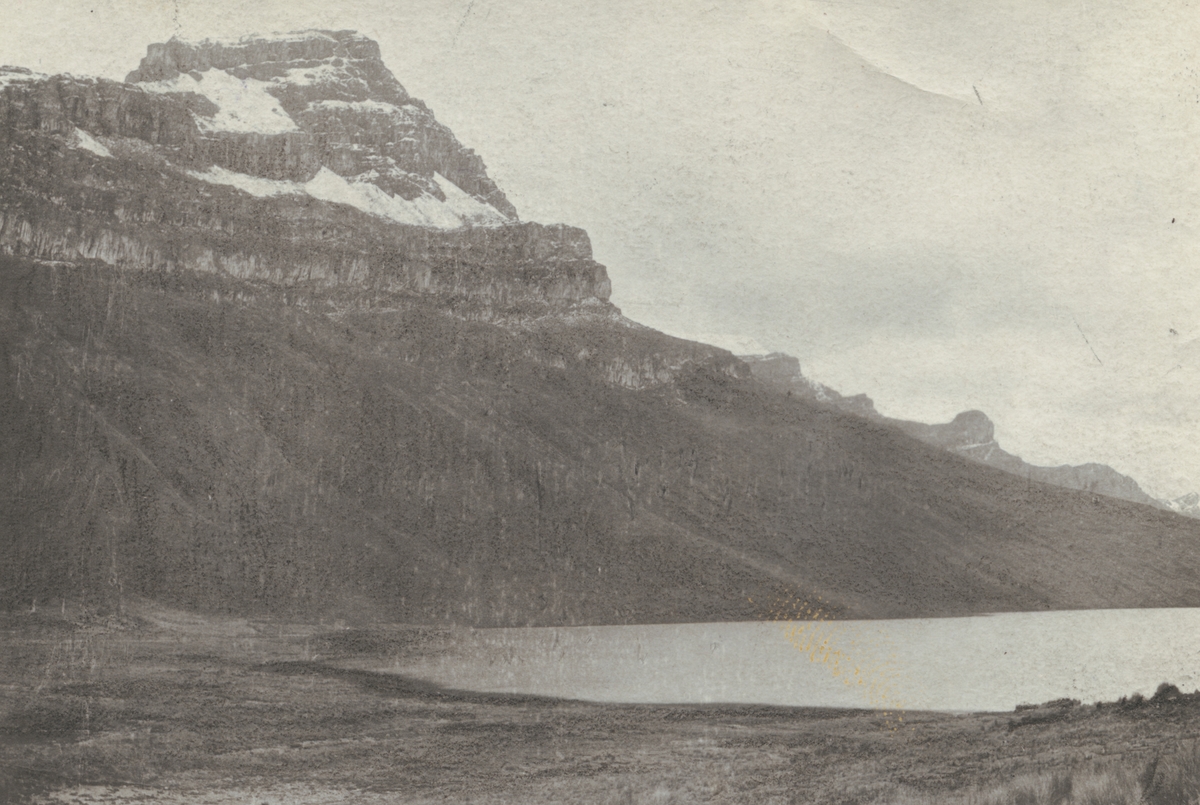 Fotografi från kuvert märkt med "Ernst Nordenskjöld". Motiv av vatten och snötäckt berg.