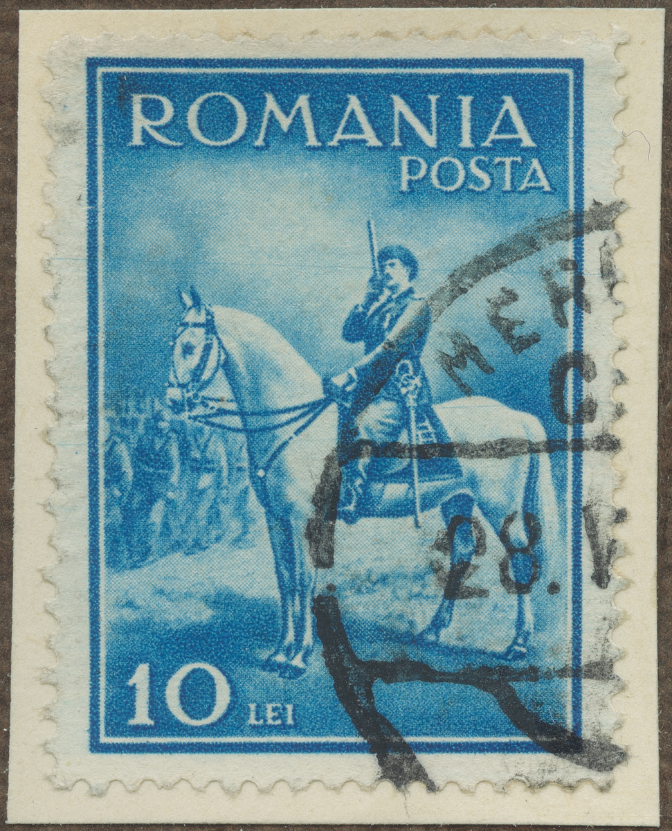 Frimärke från Rumänien, 1932. Motiv av Ryttare Kung Carol II.