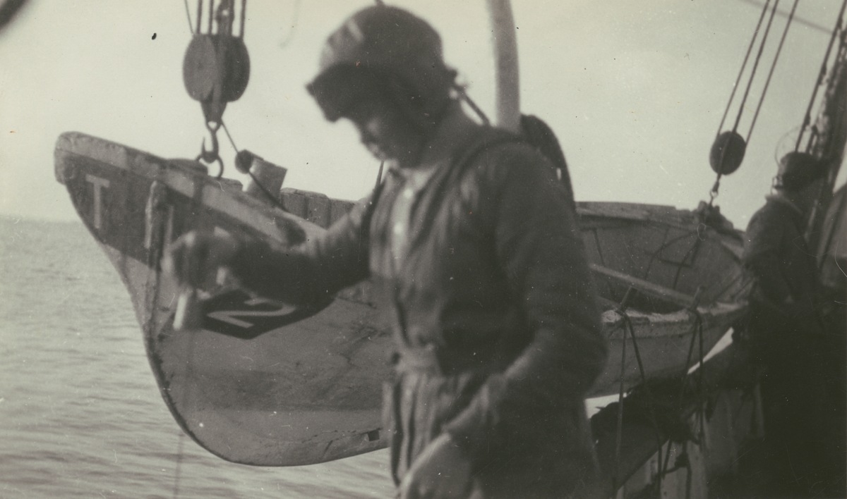 Diverse bilder ur Fred Goldbergs samling. Motiv av Thea Ahlberg ombord på fartyg.