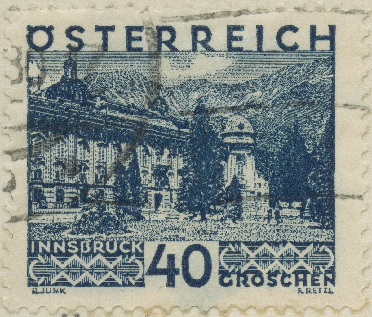 Frimärke från Österrike, 1929. Motiv av Slottet Hofburg i Innsbruck