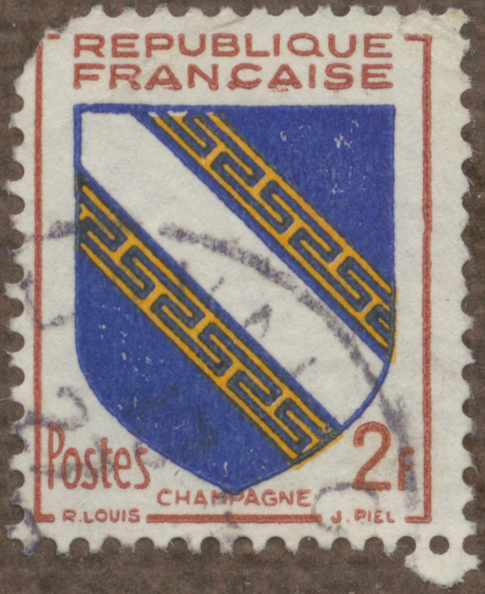 Frimärke från Frankrike, 1953. Motiv av Vapen: Champagne "-Serie: franska provinsers vapen-"