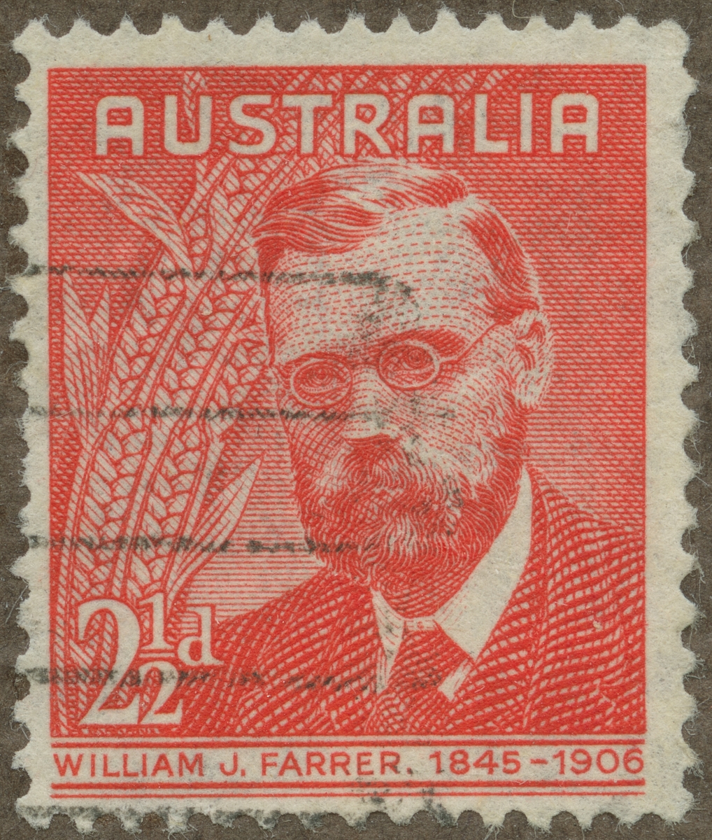 Frimärke från Australien, 1948. Motiv av William J. Farrer 1845-1906 Lantbrukets befordrare