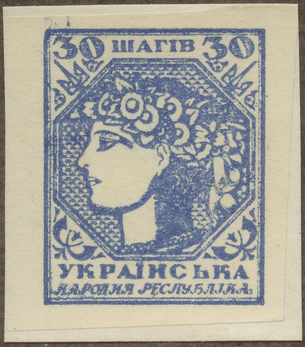 Frimärke från Ukraina, 1918. Motiv av Ukraina som Gudinna