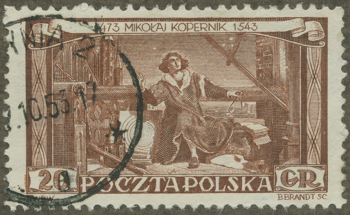Frimärke från Polen, 1953. Motiv av Nikolaus Kopernikus 1473-1543. -Astronom- 480-årsminne av hans födelse. 1473-1953.