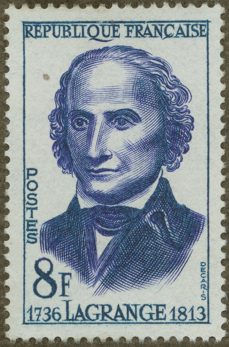 Frimärke från Frankrike, 1957. Motiv av Joseph Louis Lagrange: 1736-1813 Matematiker. Variationskalkylen. Professor Ecole Polytechnique.