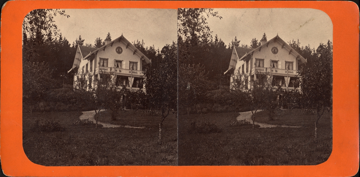 Stereobild av större villa i lantlig miljö.