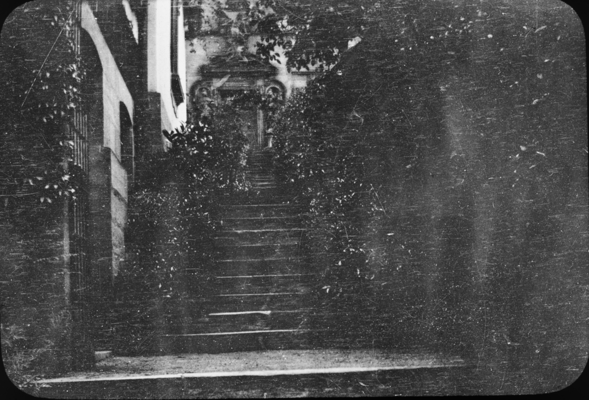 Skioptikonbild med motiv växtbeklädd trappa i Bamberg.