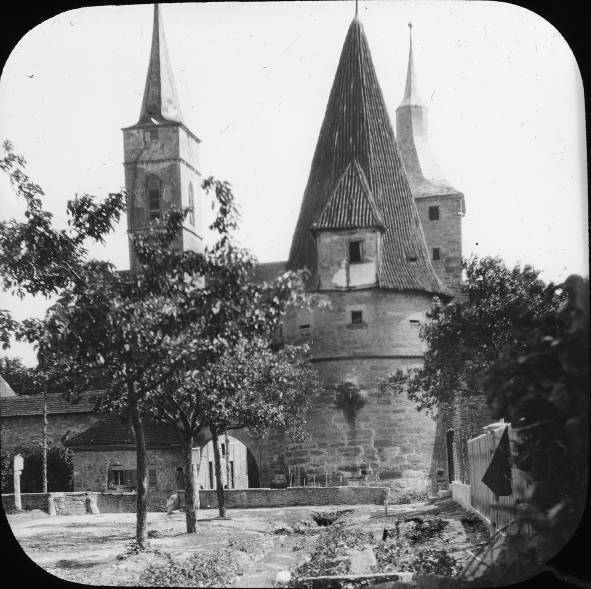 Skioptikonbild med motiv av Rödelseer Tor, Iphofen.