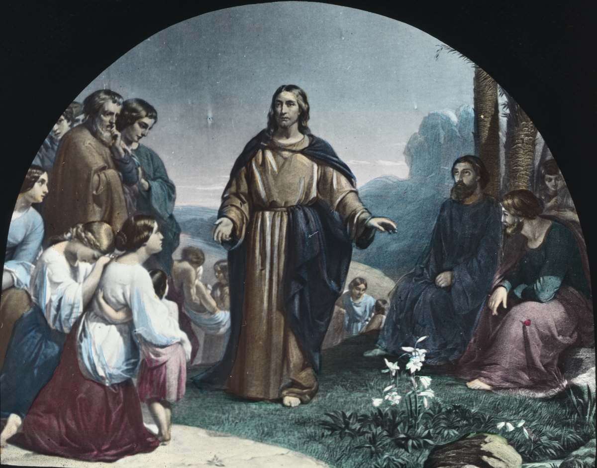 Titel: Kolorerad skioptikonbild med religiöst motiv.