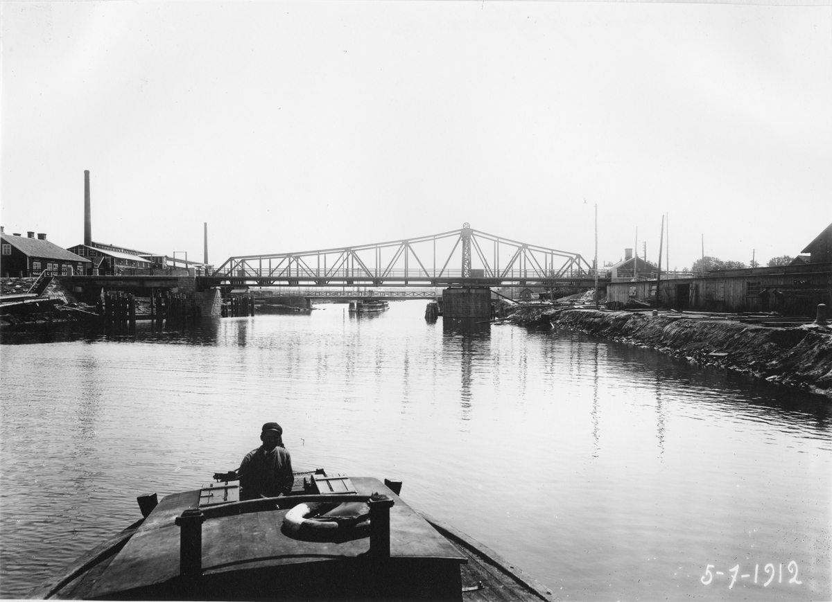 Ombyggnad av Trollhätte kanal, Trollhättan. Nya och gamla gropbroarna.