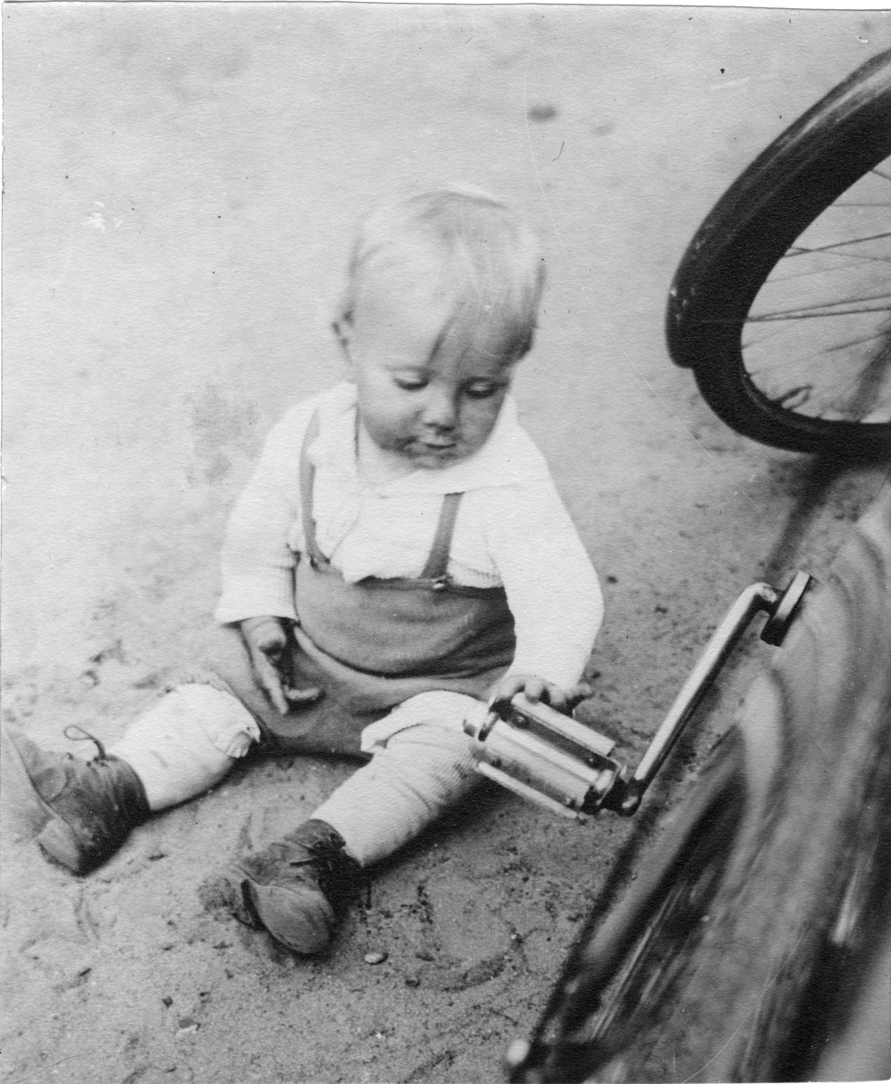 Barn vid cykel, omkring 1935.