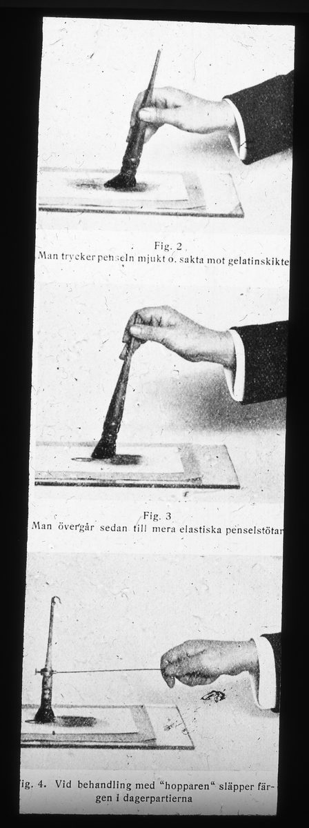 Skioptikonbild från Institutionen för fotografi vid Kungliga Tekniska Högskolan. Använd av professor Helmer Bäckström som föreläsningsmaterial. Bäckström var Sveriges första professor i fotografi vid Kungliga Tekniska Högskolan i Stockholm 1948-1958.