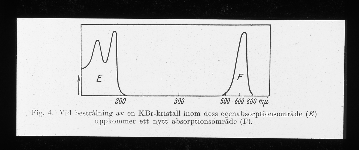 Vid bestrålning av en KBr-kristall inom dess egenabsorptionsområde ⬠uppkommer ett nytt absorptionsområde (F). Ljusets verkan på kristaller av alkalihalogener.