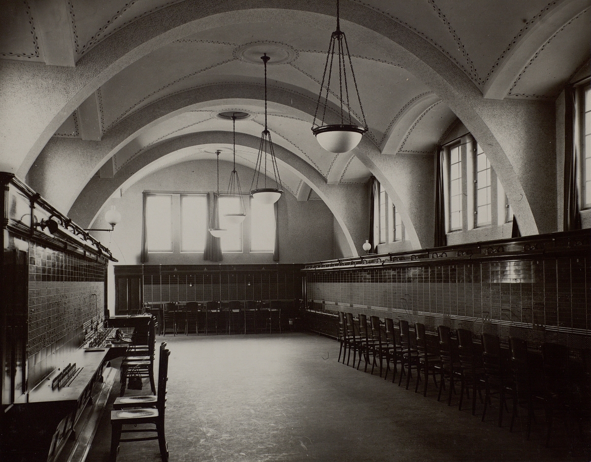 Uppsala Telefonsal med riks-, lands- och lokalbord. CB-station. År 1930.