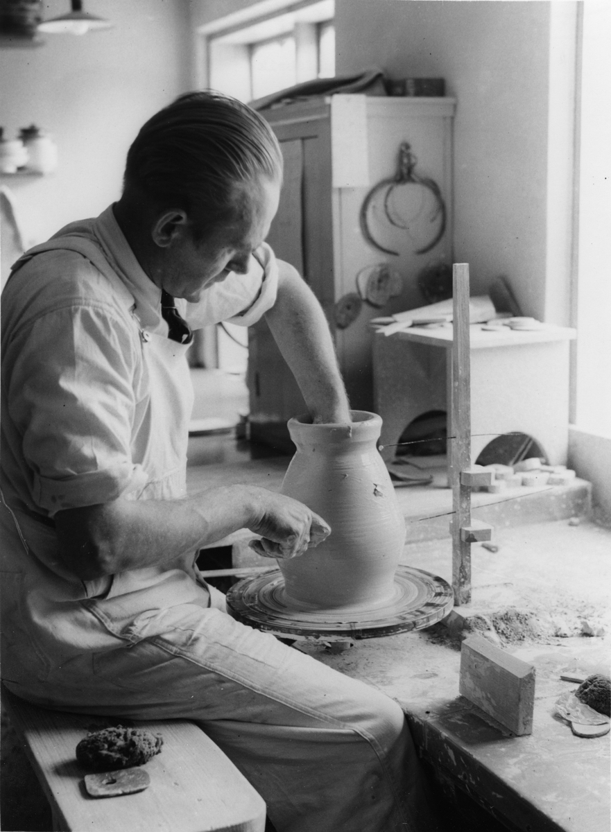 Gustavsbergs Porslinsfabrik. Handdrejning av urna.