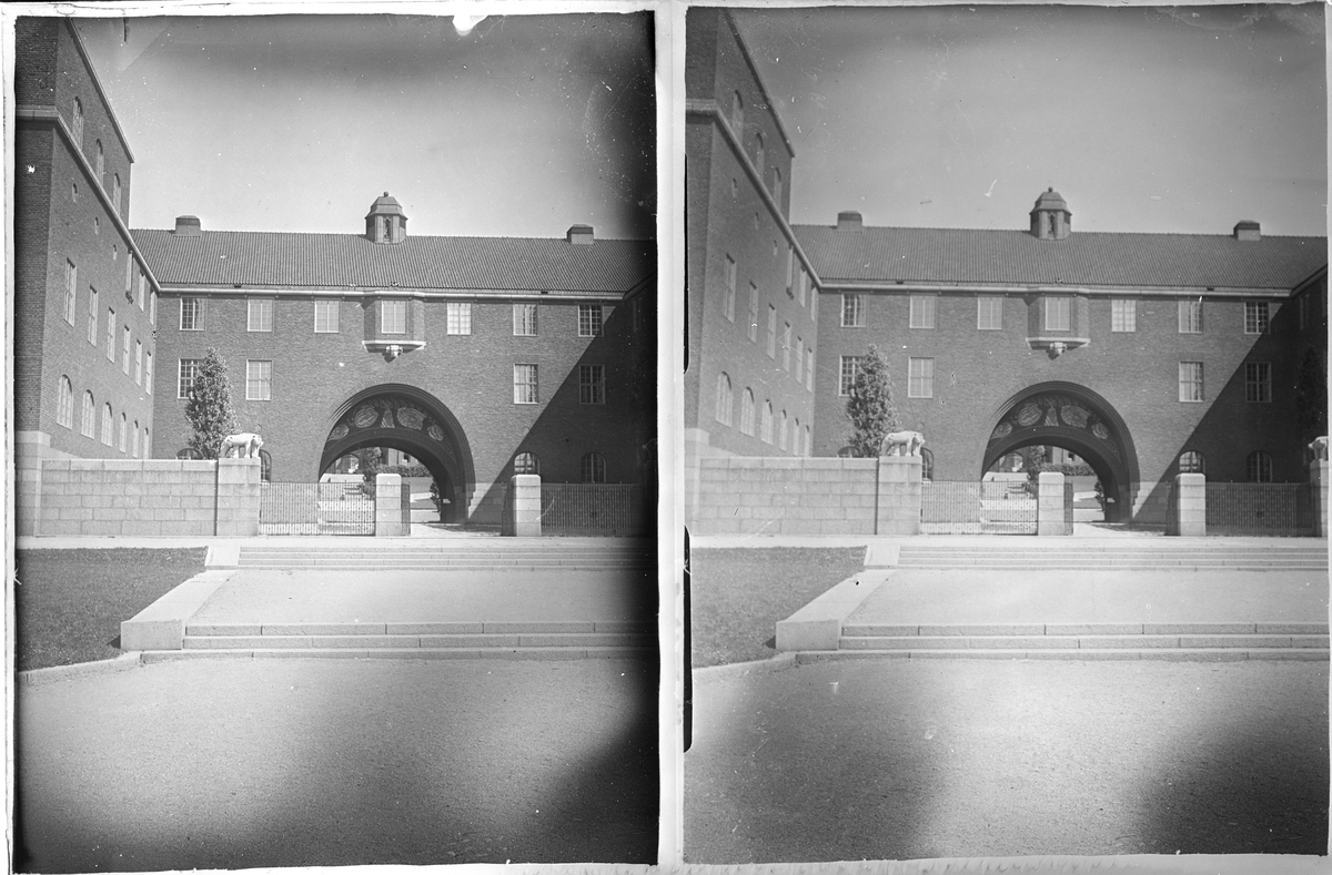 Stereonegativ med motiv från Kungliga Tekniska Högskolan i Stockholm.