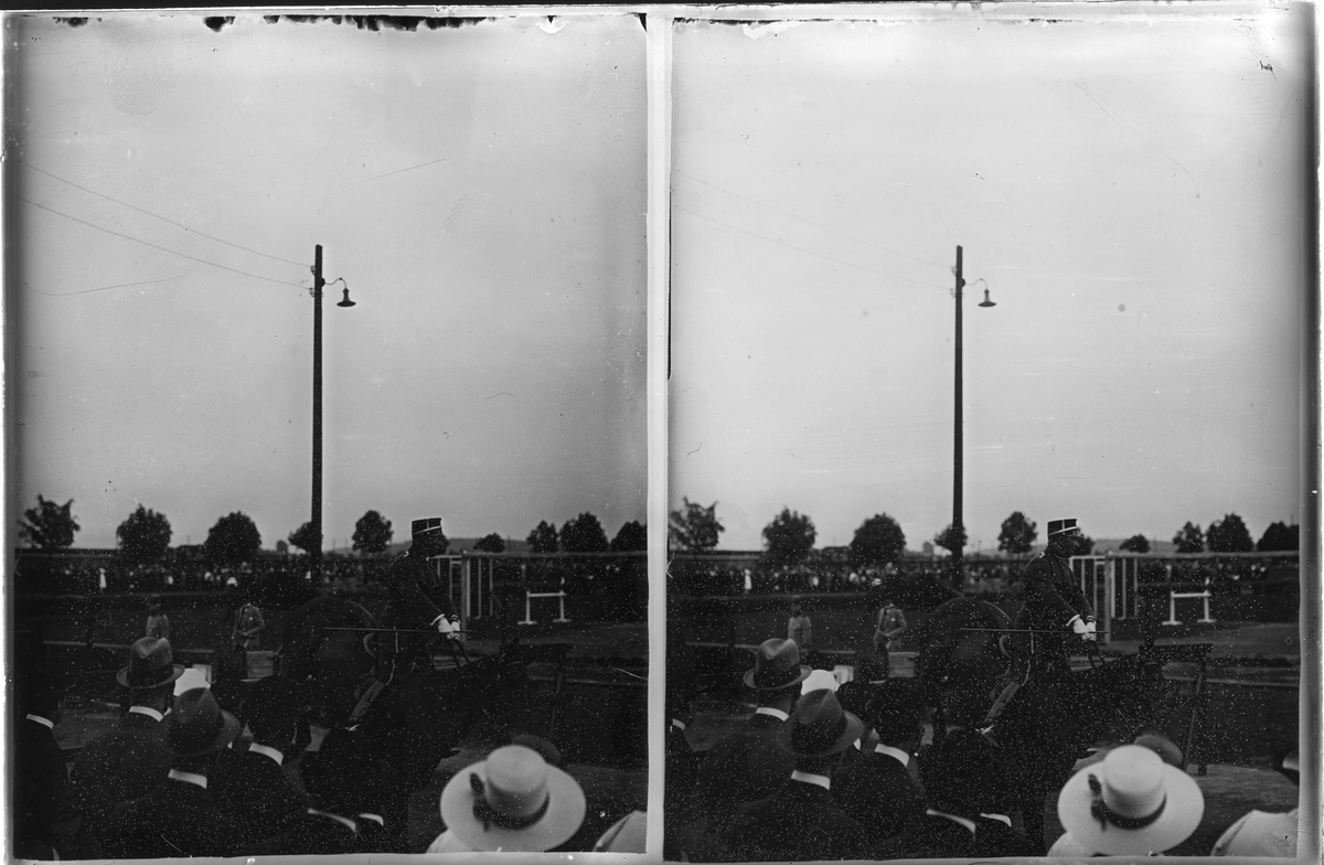 Stereonegativ med motiv från hästhoppningstävling, okänd plats.