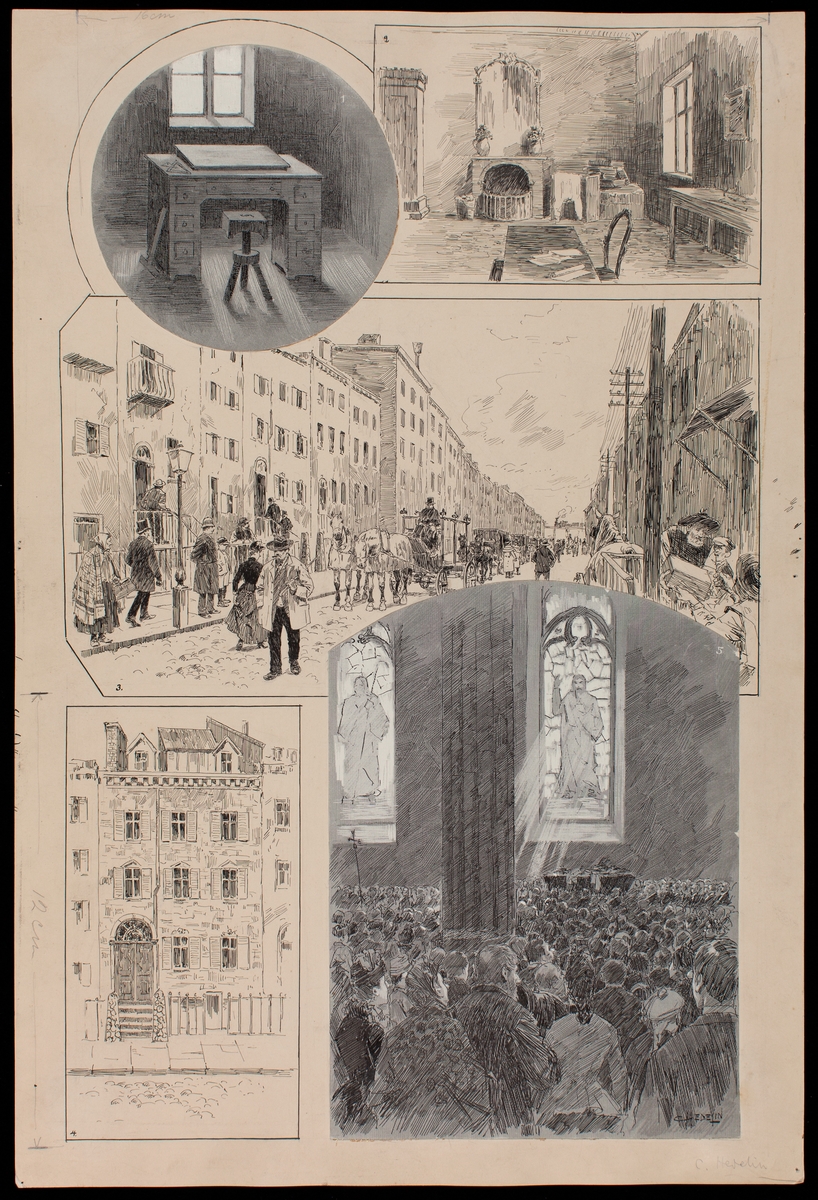 Teckningar och tidningsklipp rörande John Ericsson. Publicerad i Daedalus 1958.